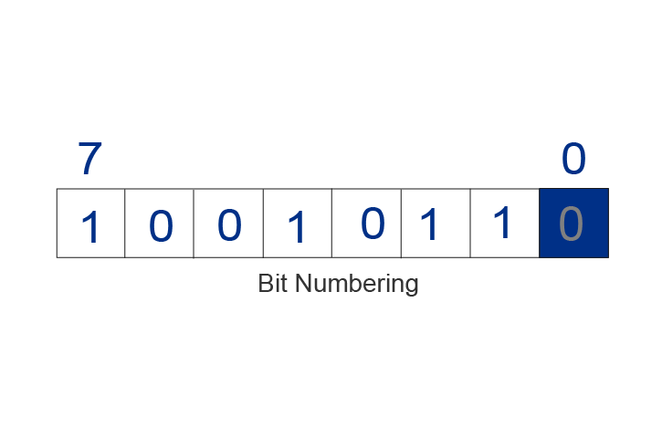 LSb 0: A container for 8-bit binary number with the highlighted least significant bit assigned the bit number 0