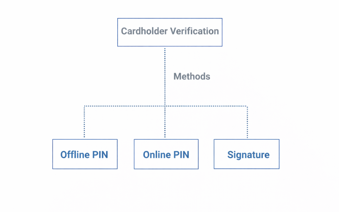 To achieve proving the cardholder identity one of the items of data retrieved from the card is the cardholder verification method (CVM) list. This ordered list contains one or more ways in which we should try to prove the cardholder is who they say they are. Please note that not all cards support cardholder verification as indicated by the Application Interchange Profile (AIP).