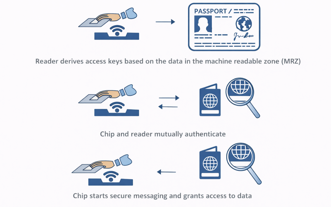 The currently standardized biometrics used for this type of identification system are facial recognition, fingerprint recognition, and iris recognition. These were adopted after the assessment of several different kinds of biometrics including retinal scan. Document and chip characteristics are documented in the International Civil Aviation Organization’s (ICAO) Doc 9303 (ICAO9303). The ICAO defines the biometric file formats and communication protocols to be used in passports. Only the digital image (usually in JPEG or JPEG2000 format) of each biometric feature is actually stored in the chip. The comparison of biometric features is performed outside the passport chip by electronic border control systems (e-borders). To store biometric data on the contactless chip, it includes a minimum of 32 kilobytes of EEPROM storage memory and runs on an interface in accordance with the ISO/IEC 14443 international standard, amongst others. These standards intend interoperability between different countries and different manufacturers of passport books.