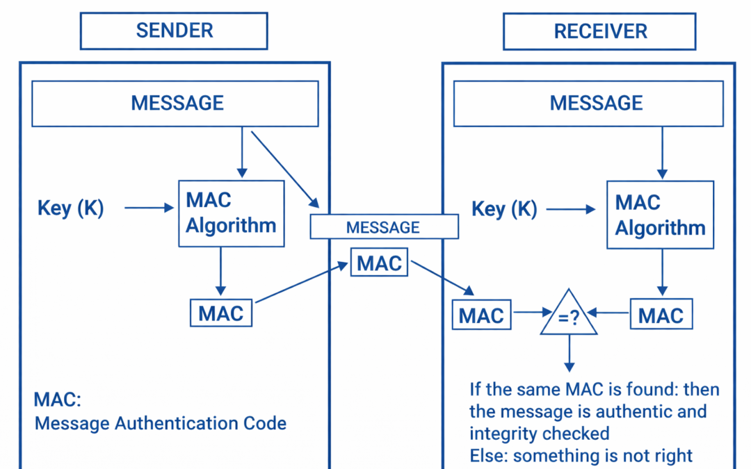This MAC is then appended to the message and transmitted to the receiver. The receiver computes the MAC using the same algorithm. If the resulting MAC the receiver arrives at equals the one sent by the sender, the message is verified as authentic, legitimate, and not tampered with.