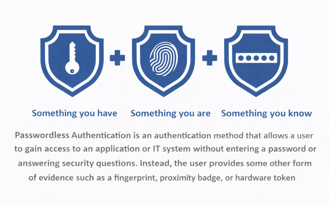 A passwordless Authentication is a form of authentication which allows users to log in without the hassle of typing passwords or in most cases without human intervention at all. These extra-secure methods include sending links or secret tokens via an email, Single-Sign-On, PIN, Finger-Print, or use of Hardware security tokens like Smart Cards.